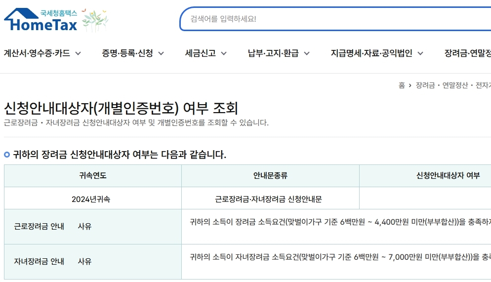 | 작년엔 받았는데 올해는 문자가 안 왔어요 | 자격이 달라졌을 수 있으므로 손택스에서 다시 확인해보세요. |