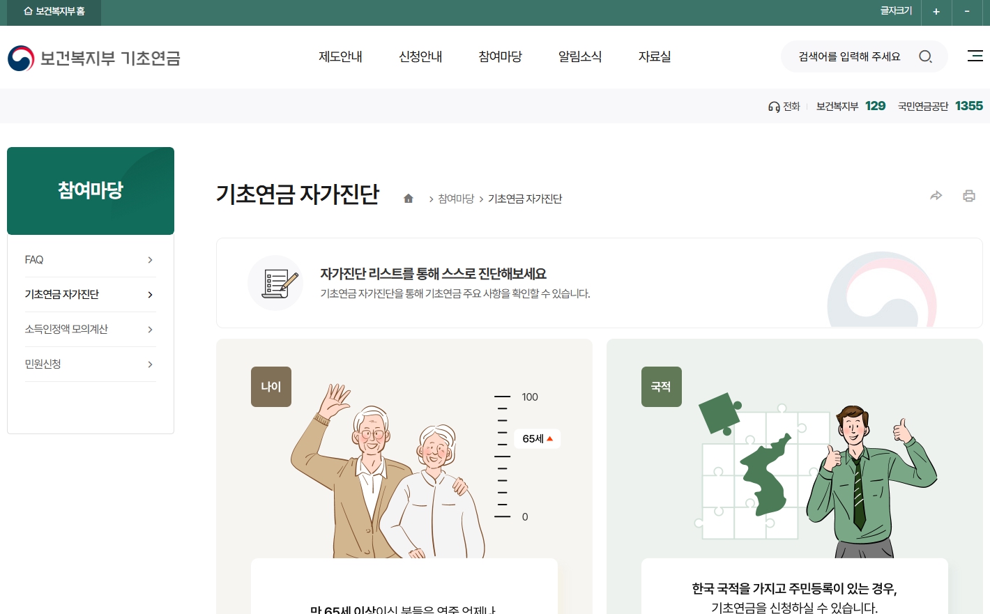 - 노인연금 수급자격 기준