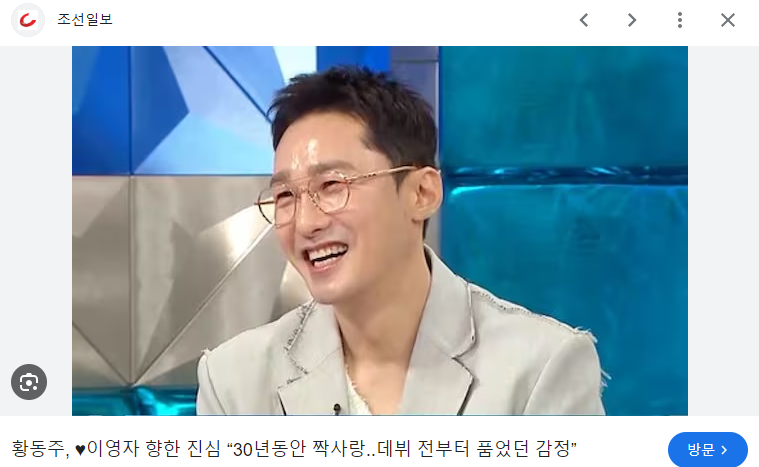 황동주는 과거 방송에서 “30년 동안 내 이상형은 이영자”라고 밝힌 바 있습니다.