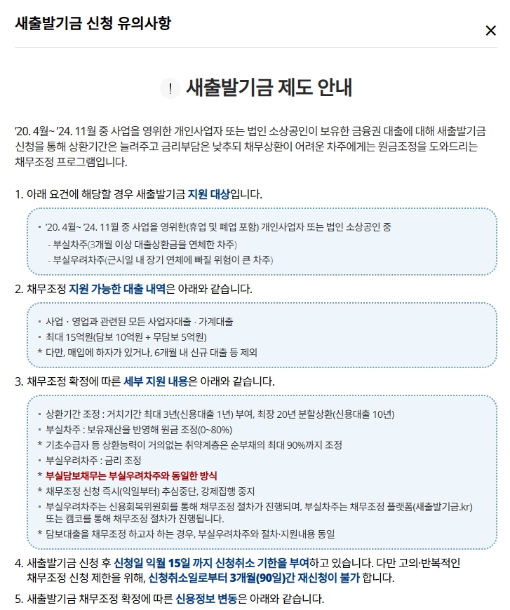 - 기존 채무조정 이력이 있는 경우 중복 여부 확인 필요
