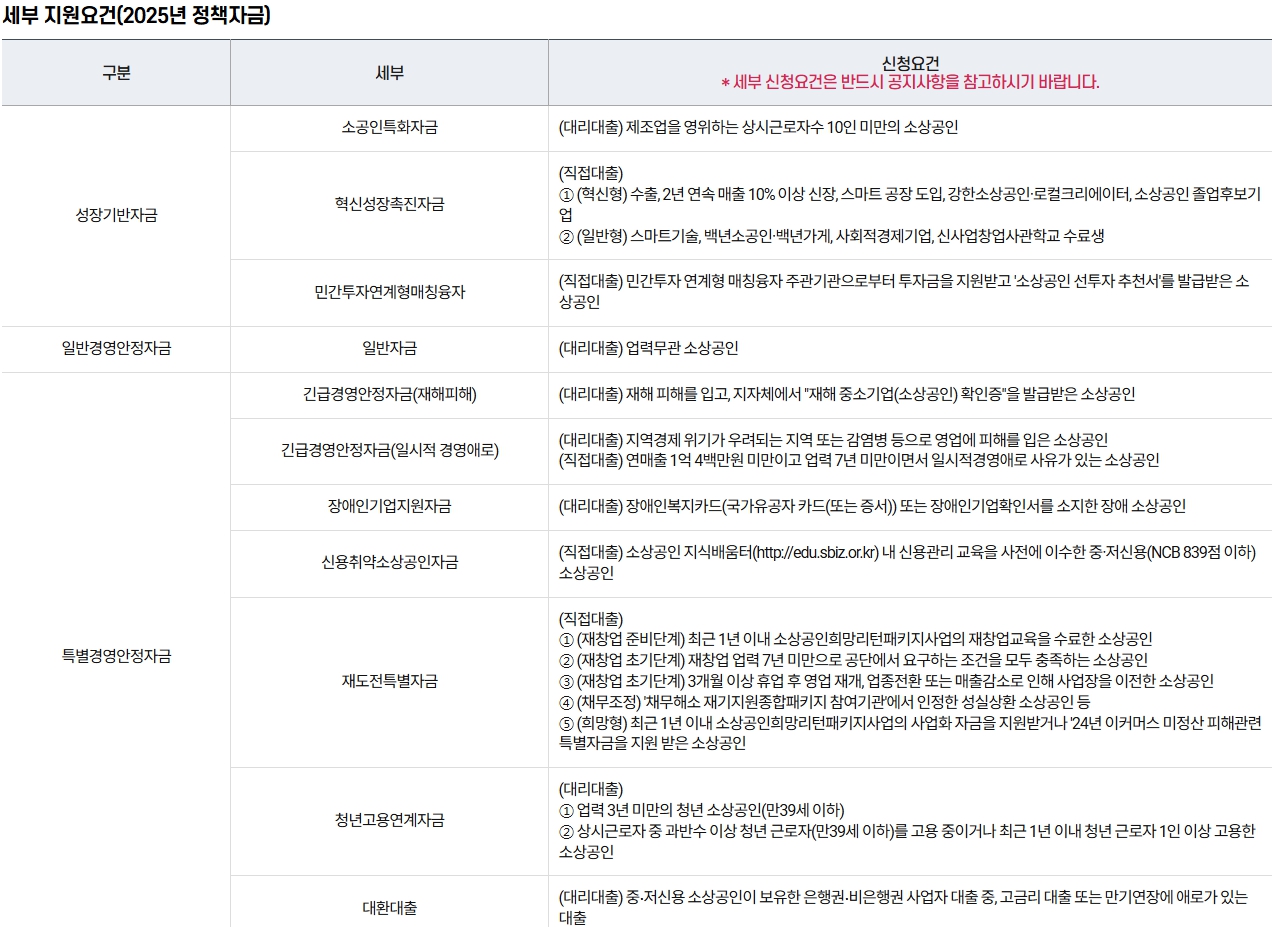 - 경영안정자금: 매출 감소 또는 위기 대응을 위한 소상공인 정책자금